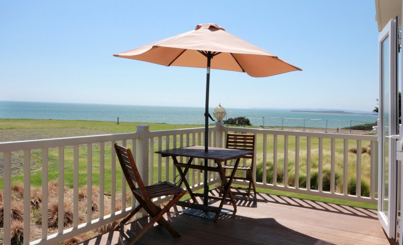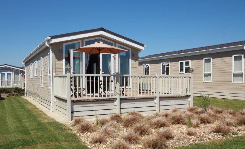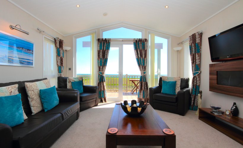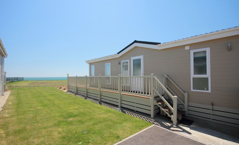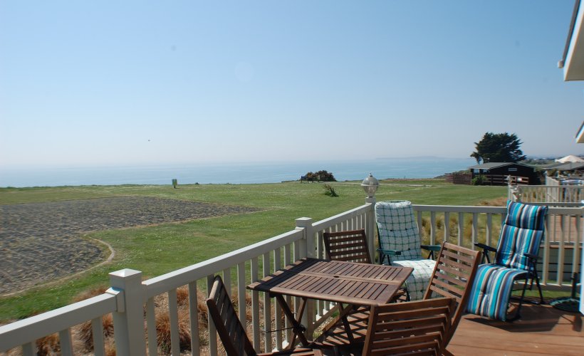Beautiful lodge on Hoburne Naish with sea views stretching from the Isle of Wight to the Purbecks. - 42' × 14'